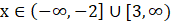 Funkcja f na zilustrowanym wykresie jest czerwona. Patrzymy, w którym miejscu wykres przecina się z osią X i naszym poszukiwanym przedziałem jest ten pod nią wraz z miejscami zerowymi.
