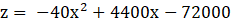 Tabela opisuje wielkość sprzedaży lalek s (ilość sztuk) w zależności od ceny x zł za sztukę i spełnienia równanie s = -40x + 3600. Podaj cenę za jedną lalkę, aby zysk w ciągu roku był możliwie maksymalny, a następnie opisz wielkość sprzedaży i zysku.