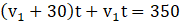 Odległość między miastami A i B wynosi 350 km. Dwa samochody wyruszyły równocześnie z różnych miast. Ich prędkość różniła się o 30 km/h. Minęły się, gdy pierwszy wykonał