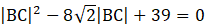 Wyznacz długość brakującego boku BC, jeżeli |AC| = 5, |AB| = 8,