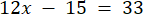 W tym zadaniu musisz rozwiązać równanie 12x - 15 = 33