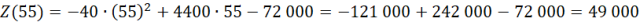Cena lalki 55 zł, wielkość sprzedaży: 1400 sztuk, zysk: 49 000 zł.