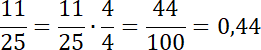 Na podstawie przykładu podanego obok zadania, licznik i mianownik ułamka pomnóż przez taką liczbę, aby w mianowniku znalazła się liczba 100, a następnie uzyskany ułamek zapisz w postaci dziesiętnej.