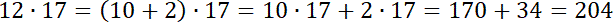 Liczbę 12 rozbij na sumę liczb 10 i 2, a następnie pomnóż każdą liczbę znajdującą się w nawiasie przez liczbę stojącą przy nim i zsumuj uzyskane wyniki.