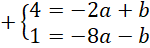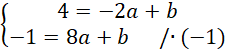Współrzędne punktów C i D podstaw pod powyższe równanie. Zauważ, że powstanie układ dwóch równań z dwoma niewiadomymi. Całe drugie równanie pomnóż przez -1, aby współczynniki przy