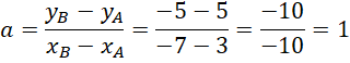 Oblicz wartość współczynnika kierunkowe prostej, do której należą punkty A(3,5) i B(-7,-5).