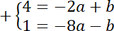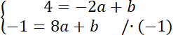 Współrzędne punktów C i D podstaw pod powyższe równanie. Zauważ, że powstanie układ dwóch równań z dwoma niewiadomymi. Całe drugie równanie pomnóż przez -1, aby współczynniki przy