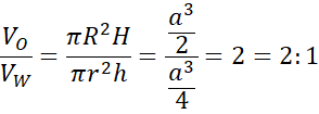 Wyznacz stosunek objętości walca opisanego na sześcianie do objętości walca wpisanego w ten sześcian.