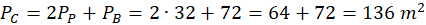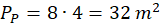 Oblicz pole całkowite, czyli sumę dwóch pól podstawy i pola bocznego.