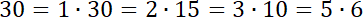 W tym zadaniu musisz znaleźć wszystkie liczby naturalne, przez które można podzielić 30.