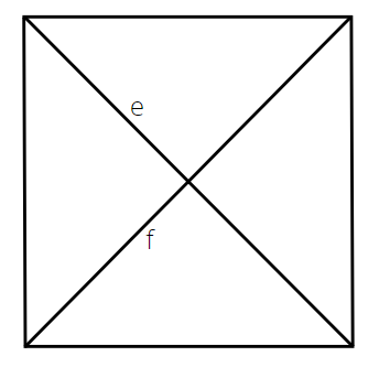 Powyższa figura jest kwadratem. Wzór na pole rombu o przekątnych e i f ma postać: