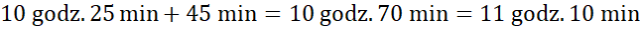 Pamiętaj, godzina liczy 60 minut, a kwadrans to 15 minut. Aby obliczyć godzinę, która będzie w przyszłości, musisz dodać do siebie wartości godzinowe i minutowe. Jeżeli wartość minutowa jest większa od 60 zwiększ wartość godzinową o jeden, a minutową zmniejsz o 60.