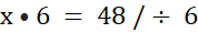 Aby obliczyć niewiadomą, musisz przenieść podzielić całe równanie przez 6: