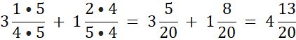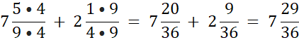 W ostatnim przypadku wspólnym mianownikiem części ułamkowej będzie iloczyn 9 i 4, czyli 36. Rozszerz mianowniki do 36.