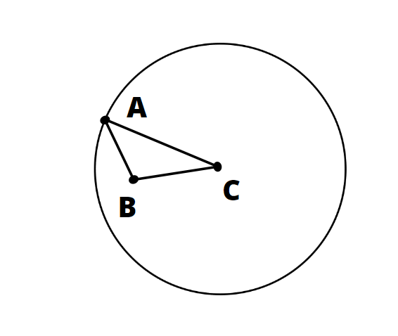 Promień to odległość od środka okręgu do dowolnego punktu leżącego na okręgu. Na tej podstawie narysuj okrąg o środku C i promieniu AC.