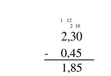 Aby poprawnie odjąć pisemnie, zapisz przecinek pod przecinkiem. Jeśli to konieczne, dopisz zera do ułamka dziesiętnego. Następnie postępuj tak, jak z liczbami naturalnymi.