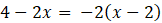 W tym zadaniu musisz rozwiązać równanie 4 – 2x = -2(x - 2).
