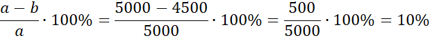 Producent kapeluszy chciał sprzedać 5000 kapeluszy, lecz sprzedał 4500 kapeluszy. O ile procent liczba kapeluszy sprzedanych jest mniejsza od oczekiwanej?