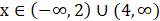 Funkcja g na zilustrowanym wykresie jest niebieska. Patrzymy, w którym miejscu wykres przecina się z osią X i naszym poszukiwanym przedziałem jest ten nad nią, bez miejsc zerowych.