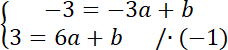 Współrzędne punktów C i D podstaw pod powyższe równanie. Zauważ, że powstanie układ dwóch równań z dwoma niewiadomymi. Całe drugie równanie pomnóż przez -1, aby współczynniki przy