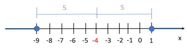 |x + 4| > 5⇒ x ∊ (–∞,–9) ∪ (–1, + –∞)