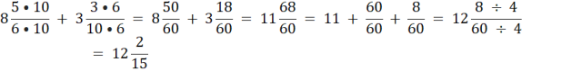 W ostatnim przykładzie wspólnym mianownikiem będzie iloczyn 6 • 10, czyli 60. Skróć powstały przez dodawanie ułamek.