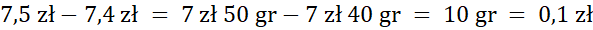 Musisz obliczyć różnicę: 7,5 - 7,4.
