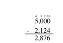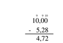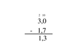 Aby poprawnie odjąć pisemnie, zapisz przecinek pod przecinkiem. Jeśli to konieczne, dopisz zera do ułamka dziesiętnego. Następnie postępuj tak, jak z liczbami naturalnymi.