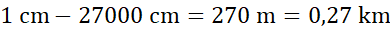 Oblicz, ile metrów i kilometrów w terenie to 1 cm w skali 1:27000.