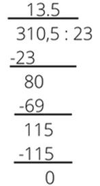 Ułamek dziesiętny dzielimy przez liczbę naturalną sposobem pisemnym tak jak liczby naturalne, a następnie dopisujemy przecinek nad przecinkiem.