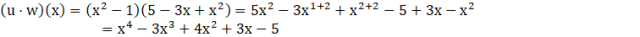 Przemnażamy wielomiany u i w, a następnie określamy stopień jako sumę stopni wielomianów u i w.