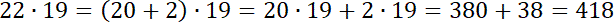 Liczbę 22 rozbij na sumę liczb 20 i 2, a następnie pomnóż każdą liczbę znajdującą się w nawiasie przez liczbę stojącą przy nim i zsumuj uzyskane wyniki.