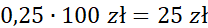 25% kwoty 100 zł to 25 zł