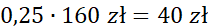25% kwoty 160 zł to 40 zł
