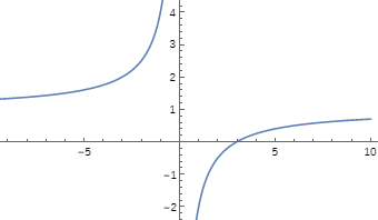 Asymptoty: x = 0, y = 1.