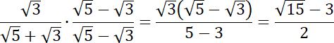Aby pozbyć się niewymierności z mianownika musisz pomnożyć licznik i mianownik ułamka przez wartość znajdującą się w mianowniku, z przeciwnym znakiem pomiędzy wyrażeniami.