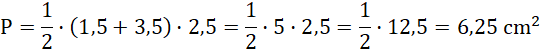 Dwie kratki na rysunku mają długość 1 cm. Musisz policzyć, ile kratek ma krótsza podstawa trapezu, dłuższa podstawa, oraz wysokość. Następnie zapisujesz długości w centymetrach i podstawiasz dane do wzoru na pole trapezu. Wykonujesz obliczenia, wynik podajesz w jednostkach kwadratowych.