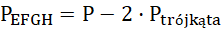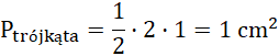 Nie możesz odczytać długości boków narysowanej figury, dlatego musisz dorysować wokół niej czworobok, tak aby wszystkie wierzchołki figury EFGH znajdowały się w bokach czworoboku, i aby krawędzie czworoboku pokrywały się z narysowanymi kratkami (tak, żebyś mógł odczytać ich długości). Powstaje kwadrat o boku długości 2 cm. Musisz obliczyć jego pole, a następnie obliczyć pola trójkątów, które są pomiędzy kwadratem a figurą EFGH. Te trójkąty mają takie same wymiary, a więc wystarczy, gdy obliczysz pole jednego z nich. Następnie odejmujesz od pola kwadratu, pola dwóch trójkątów i otrzymujesz pole figury EFGH.