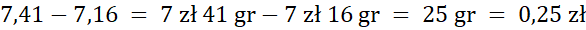 Musisz obliczyć różnicę: 7,41 - 7,16.