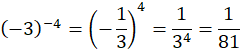Gdy wykładnik potęgi jest ujemny, najpierw zapisz odwrotność liczby i zamień wykładnik potęgi na liczbę przeciwną, a następnie wykonaj potęgowanie.