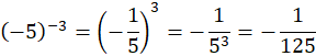 Gdy wykładnik potęgi jest ujemny, najpierw zapisz odwrotność liczby i zamień wykładnik potęgi na liczbę przeciwną, a następnie wykonaj potęgowanie.