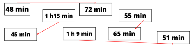 1 h 9 min + 51 min = 69 min + 51 min = 120 min