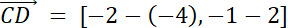 W tym zadaniu należy odczytać z układu współrzędnych, współrzędne punktów C, D, E, F i skorzystać z definicji wektora.