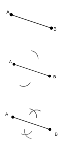 –następnie ustaw rozstaw cyrkla na szerokość większą niż połowa odcinka AB