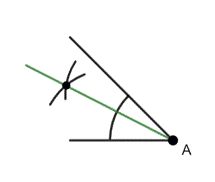 –następnie z punktu przecięcia łuków narysuj prostą przechodzącą przez ten punkt i punkt A–będzie to dwusieczna kąta przy wierzchołku A