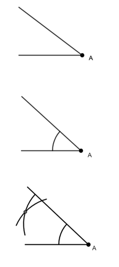 –ustaw cyrkiel na dowolny rozstaw, wbij go w punkt A i zakreśl łuk, który przecina ramiona tego kąta