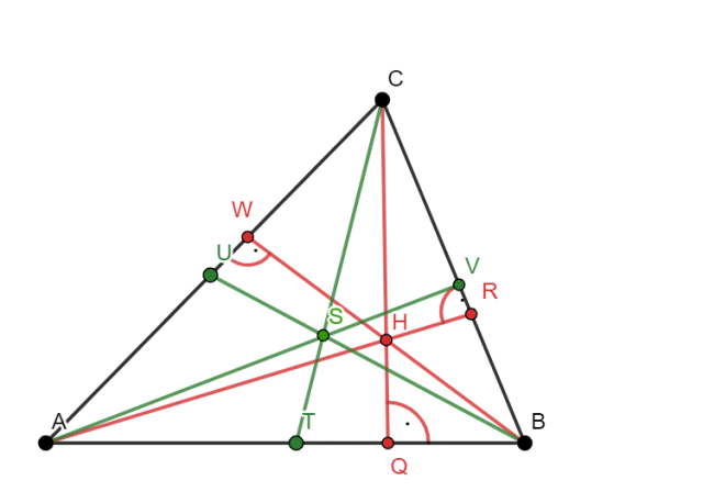 Zauważ, że w żadnym z powyższych trójkątów punkt przecięcia wysokości i środkowych nie pokrywa się. Taki przypadek jest szczególny i zachodzi tylko w trójkącie równobocznym, który jest trójkątem ostrokątnym.