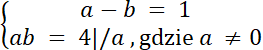 W tym zadaniu rozwiąż układ równań, rozważ dwa przypadki rozwiązań liczb a i b, a następnie oblicz równanie, wykorzystując wzory skróconego mnożenia dla wielomianów stopnia 2 i 3.