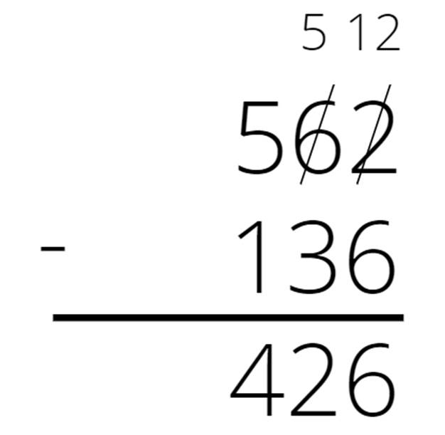 Kuba zamienił 2 na 2 plus jedna dziesiątka. Z racji tego, że zabrał 1 dziesiątkę z 60, to nad 6 zostało 5 dziesiątek.