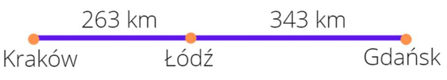 Oblicz długość trasy jaką trzeba pokonać z Krakowa przez Łódź do Gdańska.